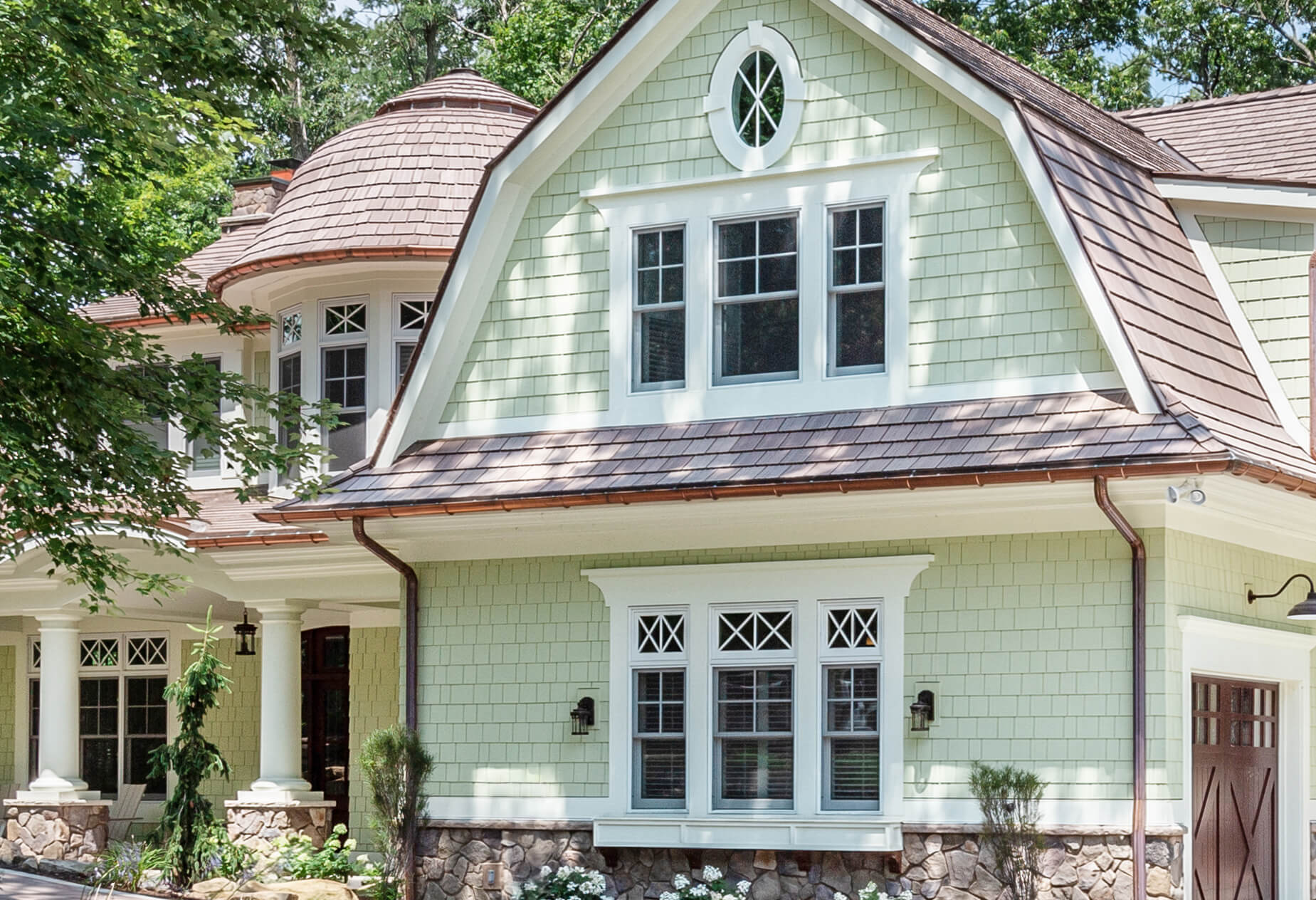 Round and oval windows can add charm to smaller areas such as the stairway, bathrooms, bonus rooms, and hallways. Even a 24 to 36 inch round window can turn a plain wall into a feature.